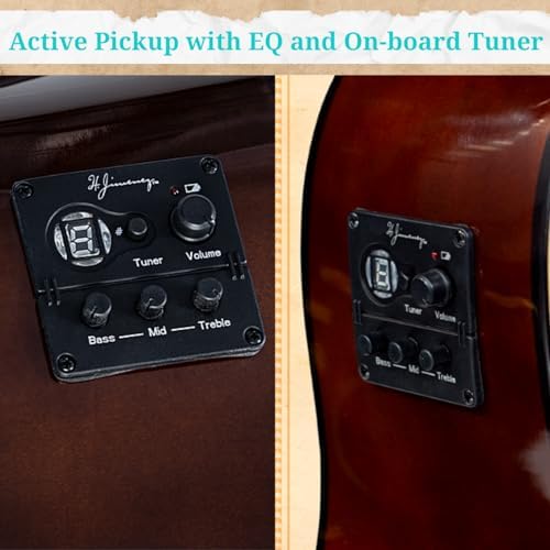 ACTIVE PICKUP WITH EQ AND ON-BOARD TUNER: Take your sound to the next level with the built-in active pickup, EQ, and on-board tuner. Whether you’re playing through an amplifier or recording your music, this feature provides enhanced versatility and convenience, allowing you to shape your tone and ensure accurate tuning.
