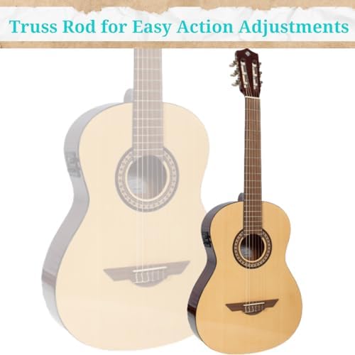 NYLON STRINGS: Experience the mellow and warm tones of the H. Jimenez LGR100NE Ranchero Series Full Size Nylon String Guitar. The nylon strings not only produce beautiful sounds but also provide a comfortable playing experience, making it perfect for beginners.