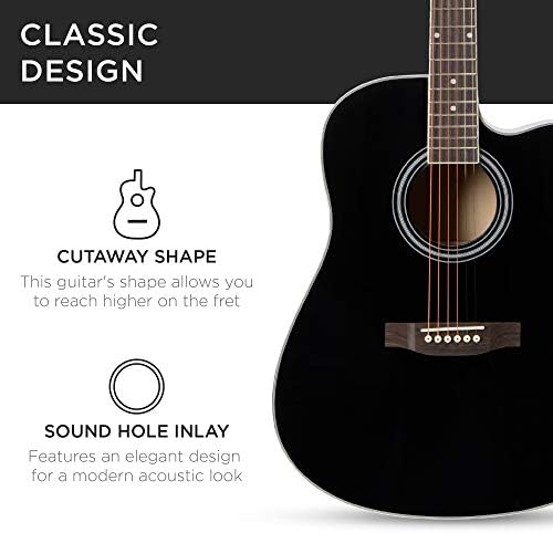 Best Choice Products 41in Beginner Acoustic Guitar Full Size All Wood Cutaway Guitar Starter Set Bundle with Case, Strap, Capo, Strings, Picks, Tuner – Black