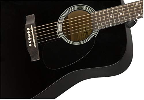 Fender Squier Dreadnought Acoustic Guitar – Black Learn-to-Play Bundle with Gig Bag, Tuner, Strap, Strings, String Winder, Picks, Fender Play Online Lessons, and Austin Bazaar Instructional DVD