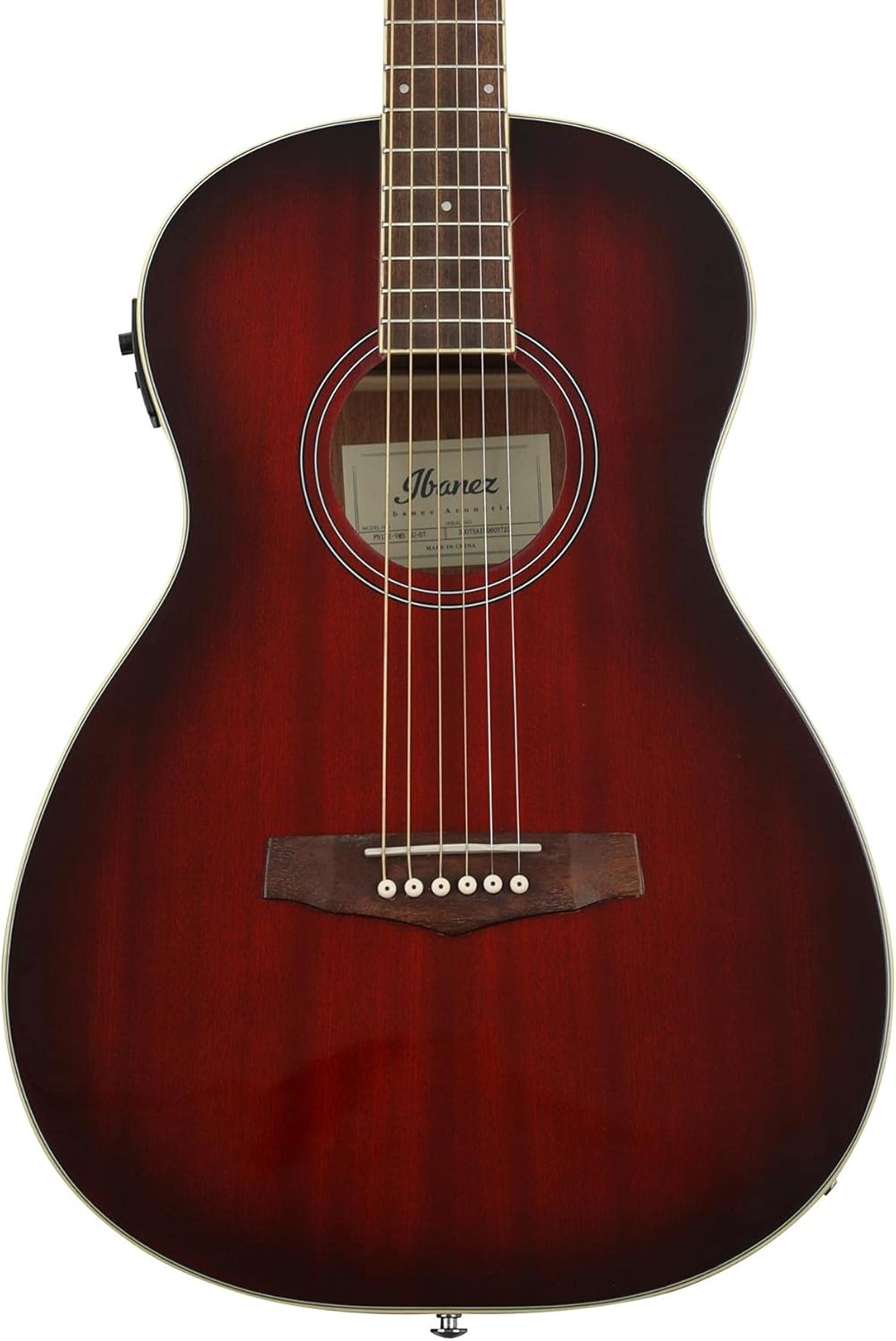 Fantastic Value in a Parlor A/E!Looking for a quality small-bodied acoustic-electric that won’t break the bank? GearNuts’s got your guitar! The Ibanez PN12EVMS is all about the warmth of nyatoh. With its sapele top, and nyatoh back, and sides, this instrument projects warm, balanced tone that’s in its element at home or in the studio. Plug in onstage, and the onboard electronics deliver the same great tone. For recording, a flat-picked “hog” sits right in your track without tons of tweakage. And you’ll appreciate the way the huggable parlor-sized body cradles comfortably when you’re playing sitting down. The Ibanez PN12EVMS rocks classy looks, great sound and playability, and a tiny price tag. What’s not to love? Ibanez PN12EVMS Acoustic Guitar Features: Parlor body style projects balanced tone and is comfortable to play Sapele top creates warmth and resonance Nyatoh back, and sides deliver warm tone Nandu fingerboard and bridge AEQ-2T