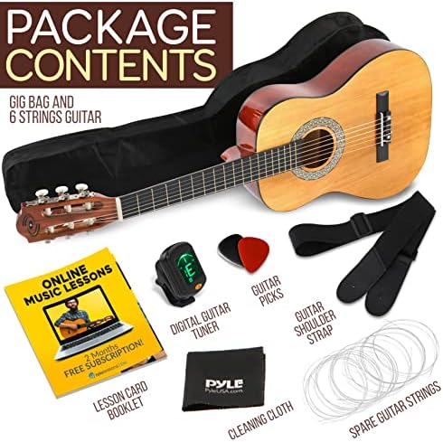 ¾ SCALE 36” JUNIOR SIZE: Pyle brings you a complete all-in-one acoustic guitar set, everything you need to start playing! Comes w/ a storage gig bag, clip-on digital tuner, spare strings, picks, cleaning cloth, and a detachable shoulder strap