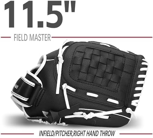 Feature: Right hand throw = Wear left hand glove Durable and lightweight. Easy to open and close mitt, making it easier for beginners Comfortable using, The baseball mitt has a ton of padding in the palm, soft synthetic leather material lightweight glove is perfect for T-ball and young players to play catch