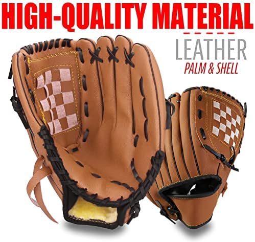 Baseball Gloves – Left Handed Softball Fielding Glove – Durable Leather Softball Picher Mitt- Adult and Youth Fielding Glove – Outdoor Sports Training Practice Equipment 10.5-12.5Inches