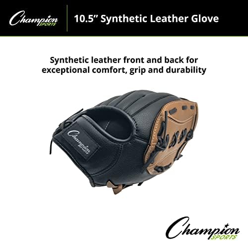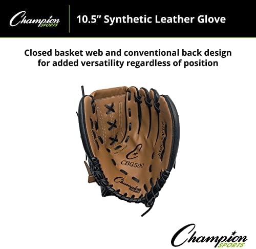 Perfect for children of all ages, the Champion Sports 11 Inch Synthetic Leather Baseball/Softball Glove is ideal for children learning the sport. The closed basket web and conventional back design of this baseball glove are versatile enough to play anywhere in the field, which allows kids to be trained at every position in their elementary leagues. Also, the deep set pockets trap the ball with ease, making this glove great for playing baseball or softball.
