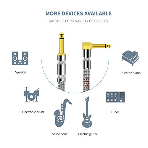 DISINO Professional guitar instrument cable, high quality, obvious noise reduction effect.Strong tension, strong toughness, metal connector, guitar cable is absolutely durable.Suitable for guitar, bass, amp, mixing, keyborad, professional recording studios, home recording studios, live performance, schools, churches, audio for video production, bands, connecting microphones to professional recorders, audio interfaces and mixers, connecting mixer outputs to studio monitors or powered speakers and many other professional audio setups.
