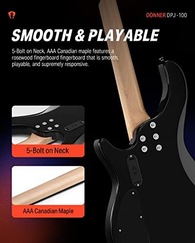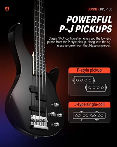 🎸[Custom PJ-Style Pickups] To give the DPJ-100 elctric bass its powerful sonic foundation, we equipped it with a pair of Custom PJ-Style pickups to provide you the fat and punchy tone and a wide range of sounds you demand plus excellent playability – all for an amazing low price!