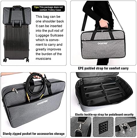 【Large Capacity Storage Bag】 There is still a lot of space left after putting the board in, with a fixed strap for the effects pedal board inside, and a side pocket outside for storing cables. It can be used as a handbag or shoulder bag, and can also be fixed on the pull rod of a suitcase, making it more convenient for travel.