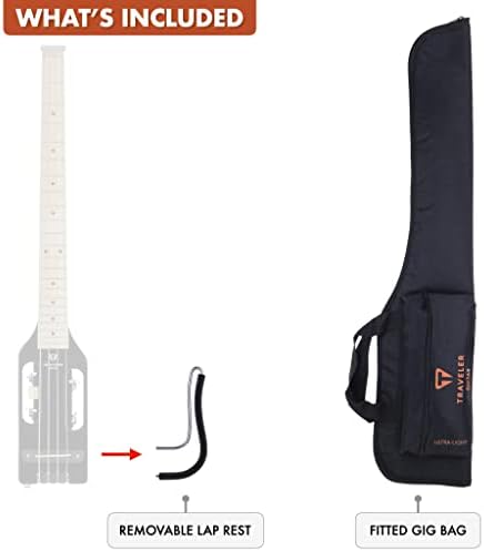 Finally a bass you can take with you. The ultra-light bass is Traveler guitar’s lightest, most compact bass offering ever. Weighing under 3 1/2 pounds and measuring only 33 3/4 inch in length, This short scale 30 inch scale Acoustic-Electric bass can go anywhere you want to take it. The proprietary In-Body tuning System uses standard tuning machines relocated into the body, eliminating the need for a headstock. As a result, you’ll have the same playing experience you’re used to on an instrument that’s 25% shorter and 61% lighter than a typical full size bass guitar. The ultra-light bass features a custom piezo pickup so you can plug into your favorite amplifier, while the built-in thumb rest and removable lap-rest frame allow you play in comfort, even in the tightest of spaces. The ultra-light bass is the perfect solution for traveling players unwilling to compromise on playability, but still looking for a small and light solution. This is an ideal carry-on bass because it stows easily in airline overhead compartments in its included deluxe gig bag.