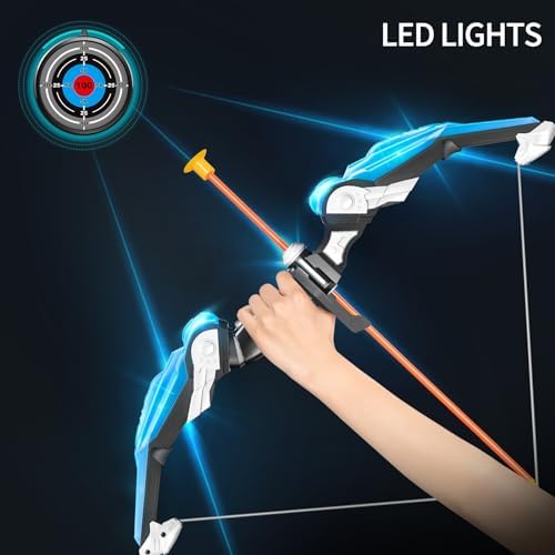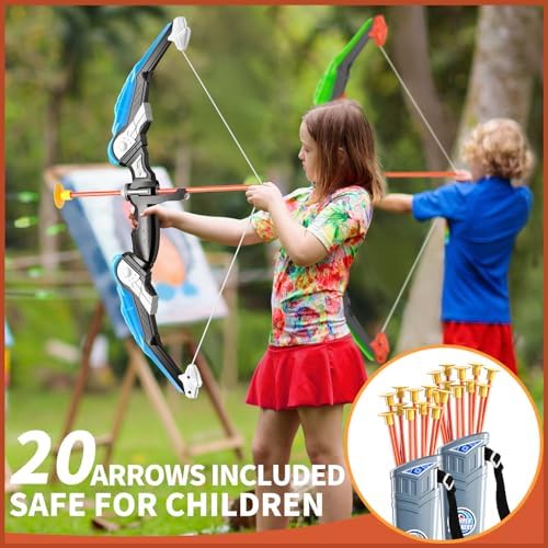 2 Pack Set Bow and Arrow Archery Toy for Kids, LED Light Up with 20 Suction Cup Arrows Target & Quiver, Outdoor Toys Kids Boys Girls Ages 3-12 Years Old
