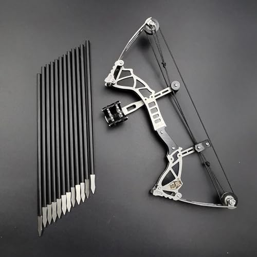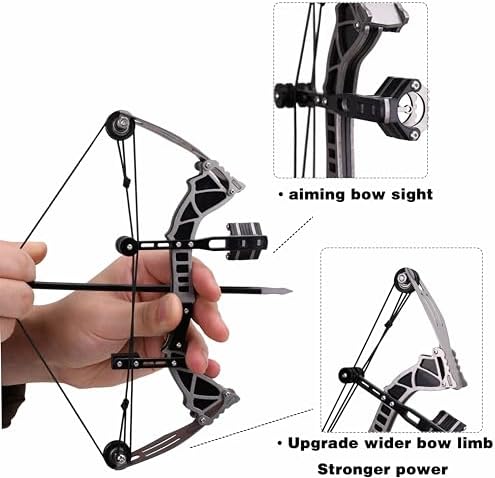 9.5″ Mini Compound Bow and Arrows Set, Mini Archery Bow Set for Target Shooting Hunting Games Metal Material Compound Bow RH/LH for Hunting Shooting Practice