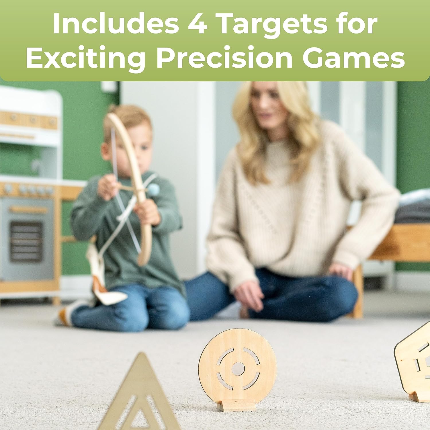 EVERYTHING INCLUDED: Packed with 5 birchwood arrows, 4 wooden target stands, and a cotton quiver with an adjustable strap, this set offers endless fun and exciting archery experiences for kids.
