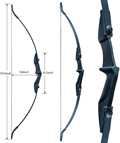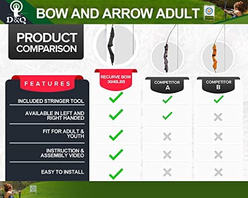 【DURABLE BOW AND ARROW FOR ADULTS】Light weight recurve bow, Draw Weight: available for 30lb and 40lb, Bow Length: 53.5″ ; Brace Height: 9.8″ ; Arrow Length: 31”. Bowstring Strands: 12 strands. Targets Paper Size: 17.7*17.7″. Bow Weight: 2.2pounds.