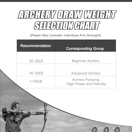🏹Specifications – Available left and right handed, 62″ Archery Hunting Bow Wooden Detachable Recurve Bow, brace height is 7.5inches-8.3inches, Draw distance is 28 inches, Pulls 25 lbs – 60 lbs,5 lb increments. Features pre-installed threaded bushings for various accessory upgrades.