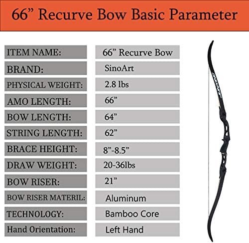 SinoArt 66″ Metal Riser Takedown Recurve Bow Adult Archery Competition Athletic Bow Weights 20 22 24 26 28 30 32 34 36 LB Right Handed Archery Kit