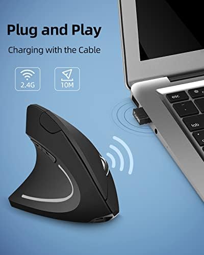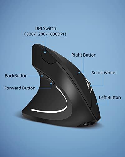 ASOYIOL Left Handed Mouse, Rechargeable Left Vertical Mouse Wireless -2.4G Left Hand Ergonomic Mouse with 6 Buttons Adjustable 800/1200/1600 DPI (Left Hand)