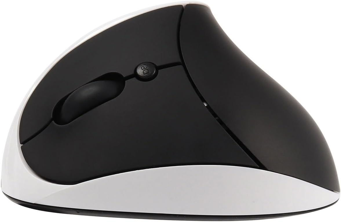 CHUYI Left-Handed Mouse, Ergonomic Vertical Rechargeable Wireless Mouse, 6 Buttons, Optical and Portable Wireless Office Mice with USB Receiver for PC Computer Laptop (Black & White)