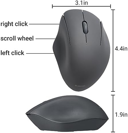 ELECOM Bluetooth Mouse Ergonomic Shape, Silent Click, 18-Month Battery Life, 2000DPI, 3 Buttons, Optical Sensor, Compatible with PC, Mac, Laptop, SHELLPA, Black (M-SH10BBSKBK)