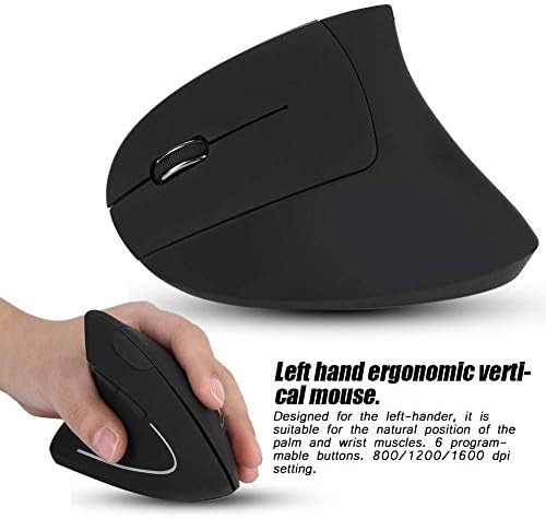 FOSA Left Handed 2.4GHz Wireless Mouse Ergonomic Vertical Optical Mouse with Wireless Connection USB Receiver Adjustable DPI Less Noise for PC Computer Laptop Macbooks