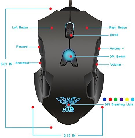 1 Year Warranty. Package contents: JTD M999 Gaming Bat Laser Gaming Mouse; Customizing CD; User’s Manual.