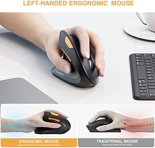 LEFT-HANDED ERGONOMIC MOUSE: Designed for left-handers, the ergonomic natural “handshake” vertical design can effectively reduce wrist pain and forearm muscle stress. The wireless ergonomic mouse is perfectly suitable for long-term mouse users or RSI users. Dimension for left-handed mouse: 4.71*2.49*2.99 inches. Weight: 125 grams.