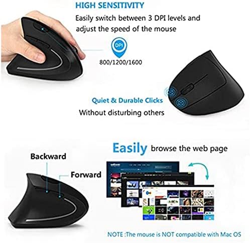 Lekvey Left Handed Mouse, Rechargeable Left Hand Vertical Wireless Mouse 2.4G Lefty Ergonomic Mice : Specifically-Designed for Left-Handers