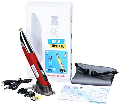 [High-performance Rechargeable Battery]: Red light flashes at low power level. It’s safer, more efficient and convenient with the built-in battery, a full charge can last for one month; coming with a base for the pen mouse and the usb receiver, no worries of losing the receiver; LED lights make it looks like a work of art.