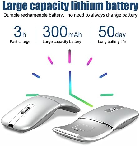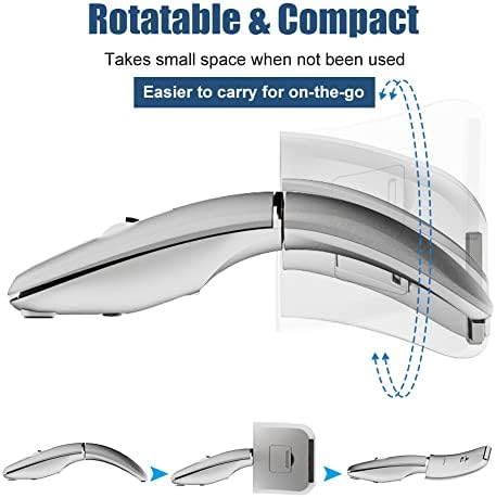 NORMIA RITA Foldable Arc Wireless Mouse Silent Click Bluetooth 2.4GHz Dual Modes Portable Curved Mouse for Home, Office, Travel (Silver)