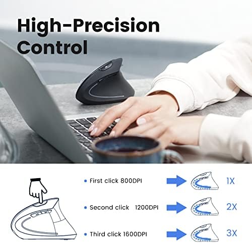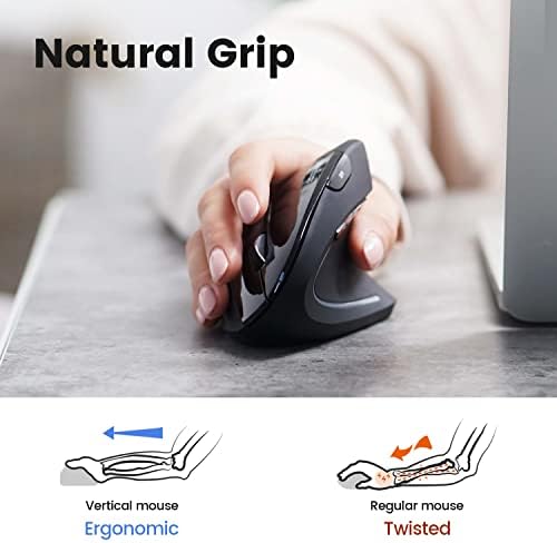 MOUSE WITH ERGONOMIC PRINCIPLES – Vertical mouse design promotes a natural handshake position to prevent the twisting of the forearm for less muscle strain and better posture