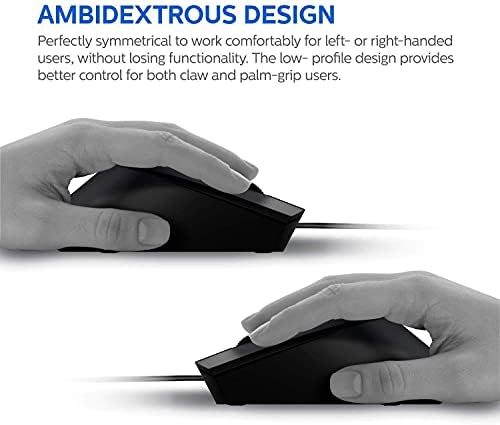 Comfortable,Relaxed and Symmetrical – The ergonomic contour of this wired USB mouse eases hand and wrist fatigue, letting you be more productive for longer periods of time. And its thoughtful design delivers a more natural fit for both left- and right-handed users without sacrificing functionality.