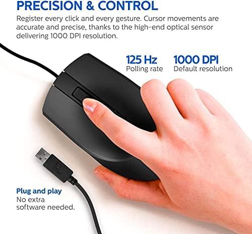 High-performance Optical Laser — Custom engineered in-house, the Philips Optical engine delivers superbly accurate positioning, with a 125Hz polling rate and 1000 DPI. The result is a corded mouse that registers every click and gesture with exact reliability.