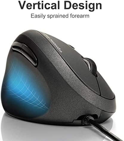 SANWA Wired Left Handed Ergonomic Mouse, Optical Vertical Mice, for Small Hands, Reduce Wrist Strain,1000/1600/2400/3200 Adjustable DPI, 6 Buttons, Compatible with Laptop, Desktop, Windows, Mac,Black