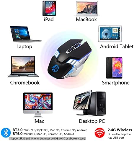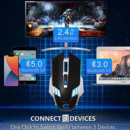 Wireless Bluetooth Mouse with 800mAh Rechargeable Battery, Multi Device(BT 5.0/3.0+USB) Silent Cordless Mouse, 7-Color Backlit, 2400 DPI, Ergonomic Computer Mice for Laptop PC Mac iPad Office Gaming