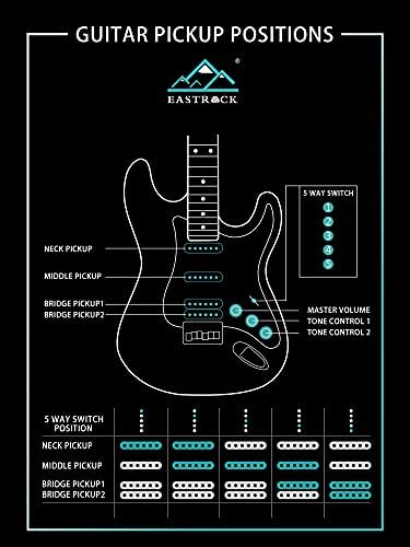 Eastrock features a solid Alder wood body with fine arches and then uses rounded frets for added security, tuning pins are made of zinc alloy for easy tuning, it not only has everything you need to learn and play electric guitar, And it doesn’t require a large investment. String markers are evenly spaced for a realistic feel for beginners.