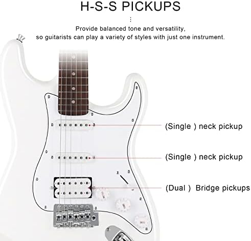 H-S-S pickups – 39″ electric guitar is an Ideal electric guitar kit for children and adults who like guitar, H-S-S pickups are perfect for a Texas blues/rock sound.