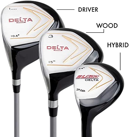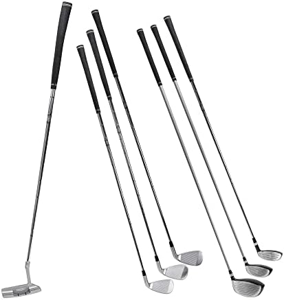 The starter set of 7 clubs includes a driver, 3 wood, 3-4 hybrid, 5-iron, 7-iron, 9-iron, and putter