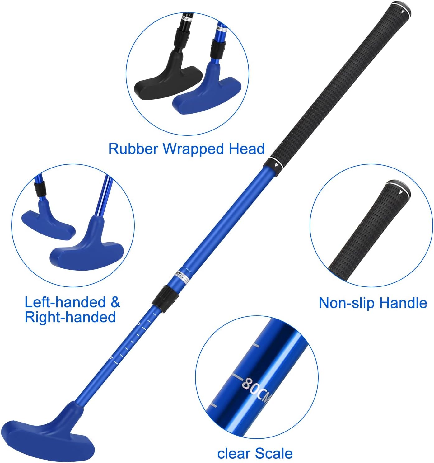 The classic two-way design never goes out of style! The Piscator Zone Mini Golf Set includes 2 putters featuring a two-way cast iron putter design that can be used by both lefties and righties.The golf putters are adjustable in length, you can adjust the length with the clear scale, suitable for adults, juniors and children. Designed with a stainless steel shaft, rubberized non-slip grip and rubberized finish putter head, it is durable and allows you to perform difficult maneuvers.The golf putter can be used not only for golf clubs, but also for home, patio, office and balcony, allowing you to enjoy indoor and outdoor fun.Our unique and fun golf putter sets make great gifts for birthdays, Father’s Day, Children’s Day, Christmas, New Year’s and any other occasion. Besides, it is also a good choice to share putting and playing golf with your family and friends in daily life.