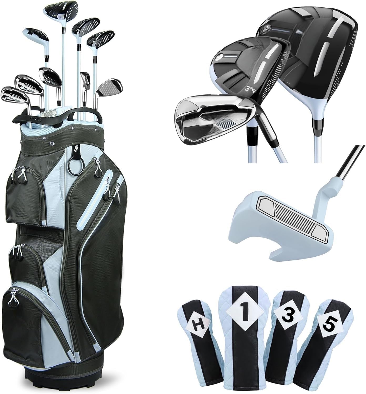 Pre-Sale Women’s Complete Golf Club Package Set, Right/Left Handed Includes Titanium Driver, Fairway Woods, Hybrid, Irons, Mallet Putter, Cart Bag, 4 Head Covers