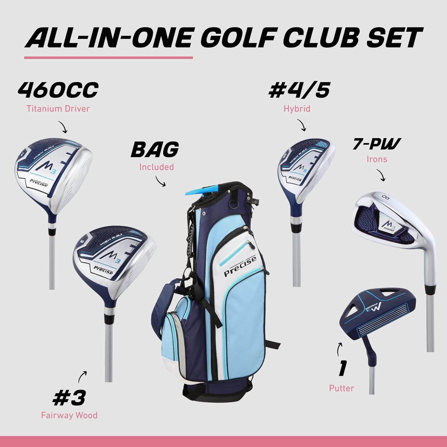 Precise M3 Complete Womens Golf Clubs Set, Includes Driver,