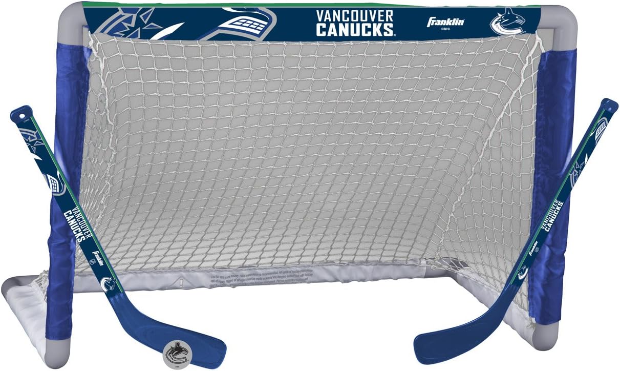 Franklin Sports NHL Mini Hockey Set – Kids Indoor Knee Hockey Goal, Ball, 2 Mini Hockey Stick Combo Set – Youth NHL Team