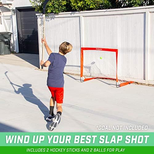 GoSports Street Hockey, Choose Between Street Hockey Goal Set with Sticks, or Street Hockey Sticks (2 Pack)
