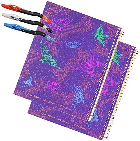 2 Left-Handed Wide Ruled notebooks With Butterfly Design Plus 3 Left-Handed Visio Pens