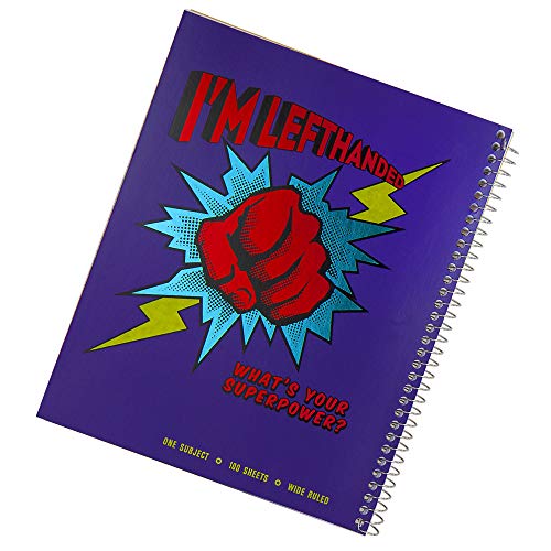 This set of two notebooks consist of wide-ruled sheets which are especially designed to help young lefties learn to form letters. This one subject, 8″ x 10.5″,100 sheets, opens left to right with the spiral on right side for left-handed writing convenience, holes punched on left side, perforated for easy tear sheets. Funny quote “I’m Left-Handed! What’s your Super Power”. Additional photo shows the color assortment. We will pick for you one notebook from what’s available in stock. Set also includes a 3 Pack of left-handed Maped Visio Pens: 1 each black, blue and red pens. Fast-drying non-smudge ink with an ultra-smooth flow. Perfect set for the lefty student.
