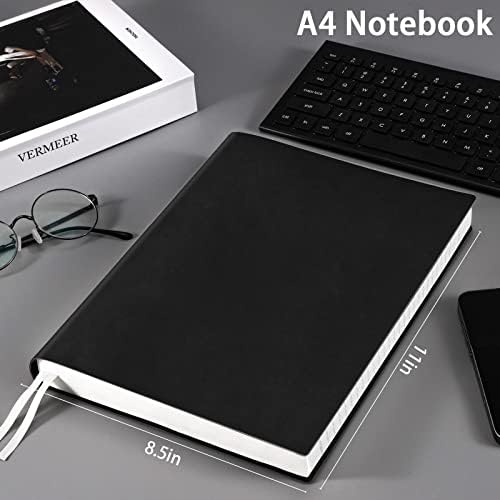 Letter size A4 Large Notebook: Inserted 2 white ribbon bookmarks to take you back to the exact pages you want quickly. Free 125 assort colors index tabs to highlight key items, page markers, dividers into many sections. Solid expandable back pocket for loose leaf paper, receipts.