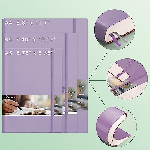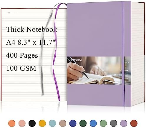 EMSHOI Large Lined Journal Notebook – 400 Pages 8.5″ x 11″ A4 College Ruled Notebook for Work, 100gsm Thick Journal for Writing, Faux Leather Softcover, Sticky Notes, Light Purple