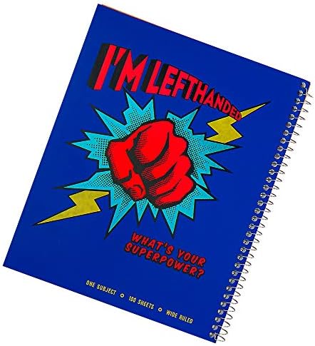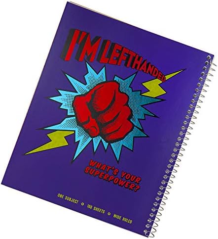 Set of 3 “Super Power” wide ruled notebooks with a colorful shiny logo cover. For your hip lefty student with sturdy metal spirals that prevent easy bending. 100 8-1/2″x11″ sheets, 1 subject, punched on the right for 3-ring binders. Set of 3 in assorted colors. Comes in 3 different colors, we will select based upon availability.