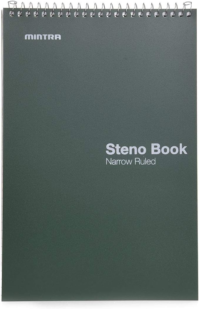 Mintra Office Steno Books (Poly Steno 8pk (Arctic Ice, Green Olive, Charcoal), Narrow Ruled)