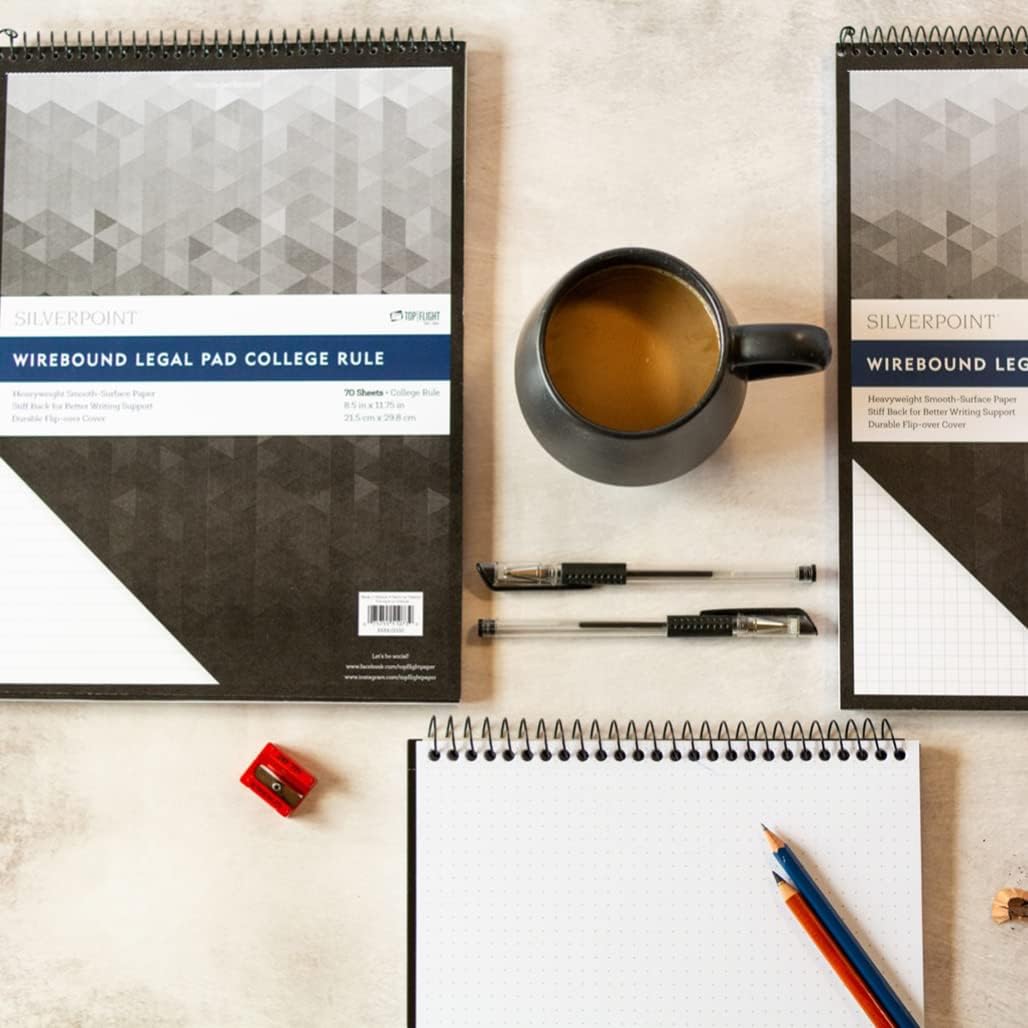The Silverpoint line by Top Flight is an upgraded office line featuring all the preferred qualities in office products. Professional graphics on the cover of each pad and protective flip-over covers show of the finest in function and design. Each pad has sturdy top wire binding holding in the 20 # smooth-surface micro-perforated tear-off flysheet papers. Great for left-handed writers because the spirals don’t get in the way. A durable heavyweight back holds it all together, ensuring a long-lasting, quality product to suit the needs of professional and student alike. Top Flight Incorporated has been in business for over 80 years offering products that meet the highest standards of quality and affordability.