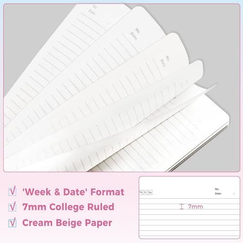 🌈Soft Rubberized Spiral & Date Design – The spiral binding is sturdy but flexible. There are Sunday through Saturday boxes and “No.___ Date___” in the top corner of every page, front ‘n back. Help you stay organized while taking notes.