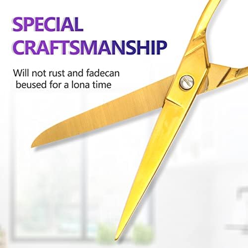 【RETRO SIMPLE APPEARANCE】These beautiful office scissors are forged from high-quality stainless steel metal,They are polished by the electroplating process to achieve a smoother cut and will not rust and fade over time.The gorgeous appearance makes these scissors eye-catching wherever they are placed.Even if they are no longer sharp after a few years, they can still be an excellent collection on the family display shelf.